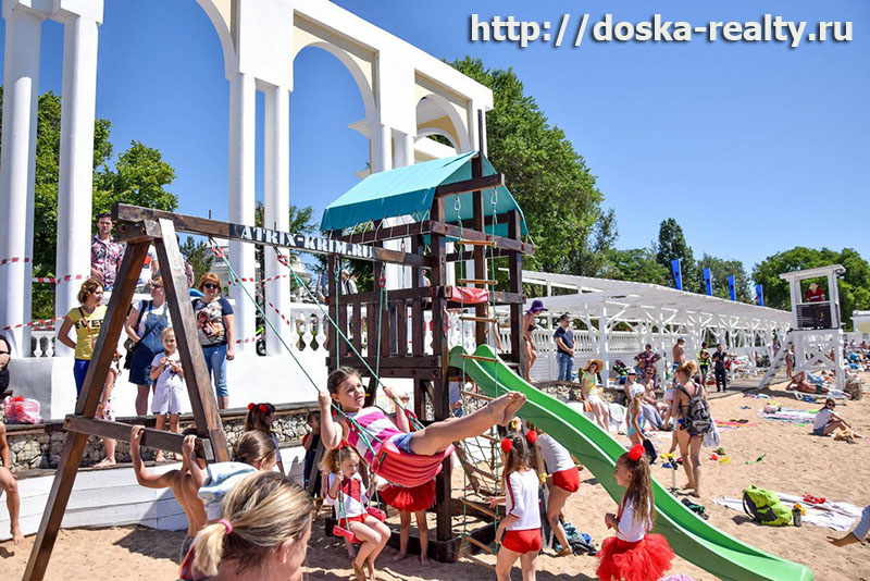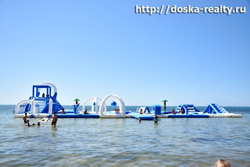 В море установлен большой детский надувной комплекс — полоса препятствий с горками, лабиринтами и батутами. Ежедневно по расписанию здесь будут проходить соревнования на время прохождения полосы препятствий. Безопасность обеспечат матросы-спасатели. В вечернее время на пляже будет работать детский кинотеатр под открытым небом
