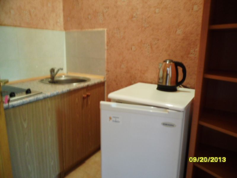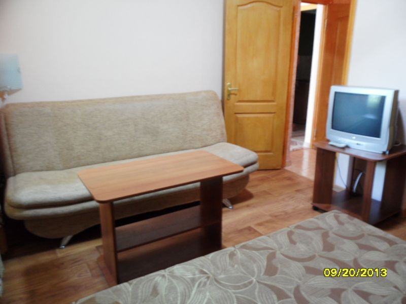 Однокомнатная квартира в мини-пансионате для отдыха летом в ста метрах от центральной набережной, рядом квартал детской площадки, парк развлечений, пляж в двух-трех минутах ходьбы. В квартире все удобства, кухня с посудой, душ, туалет, холодильник, телевизор, кондиционер, двуспальная кровать и диван.