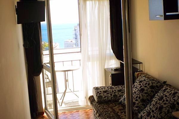 Номера-студии на двоих, полные чистейшего крымского воздуха, с балконом (столик,кресла) и видом на море и горы .
